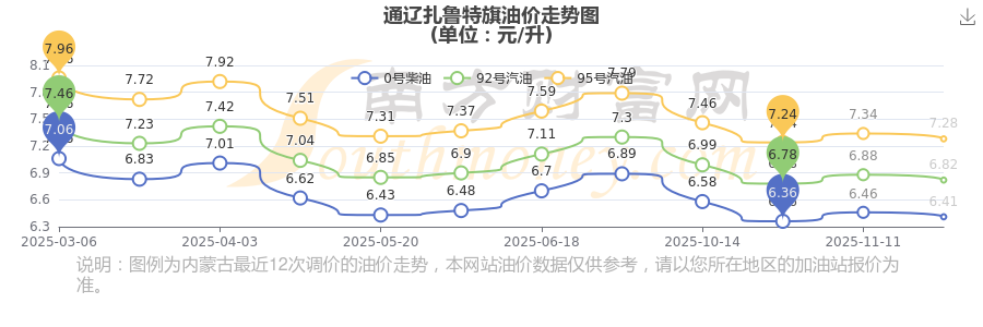 通遼扎魯特旗歷史油價走勢圖