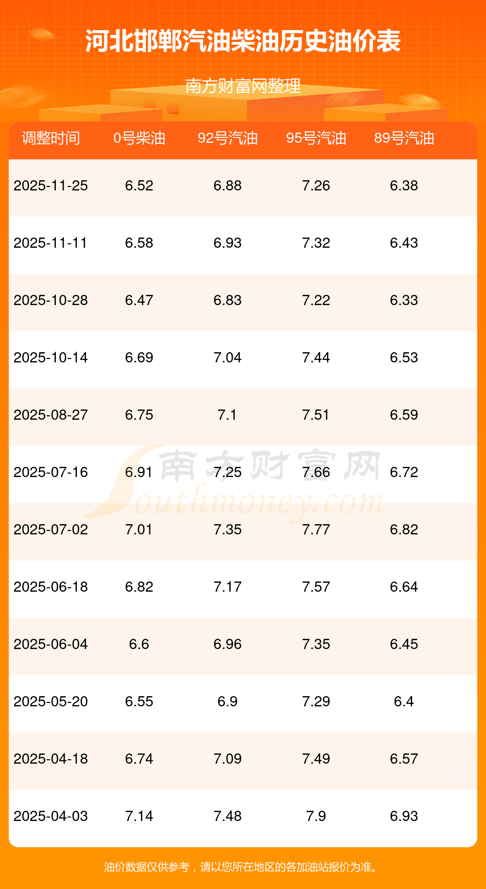 2025年汽油柴油歷史油價(jià)調(diào)整一覽表
