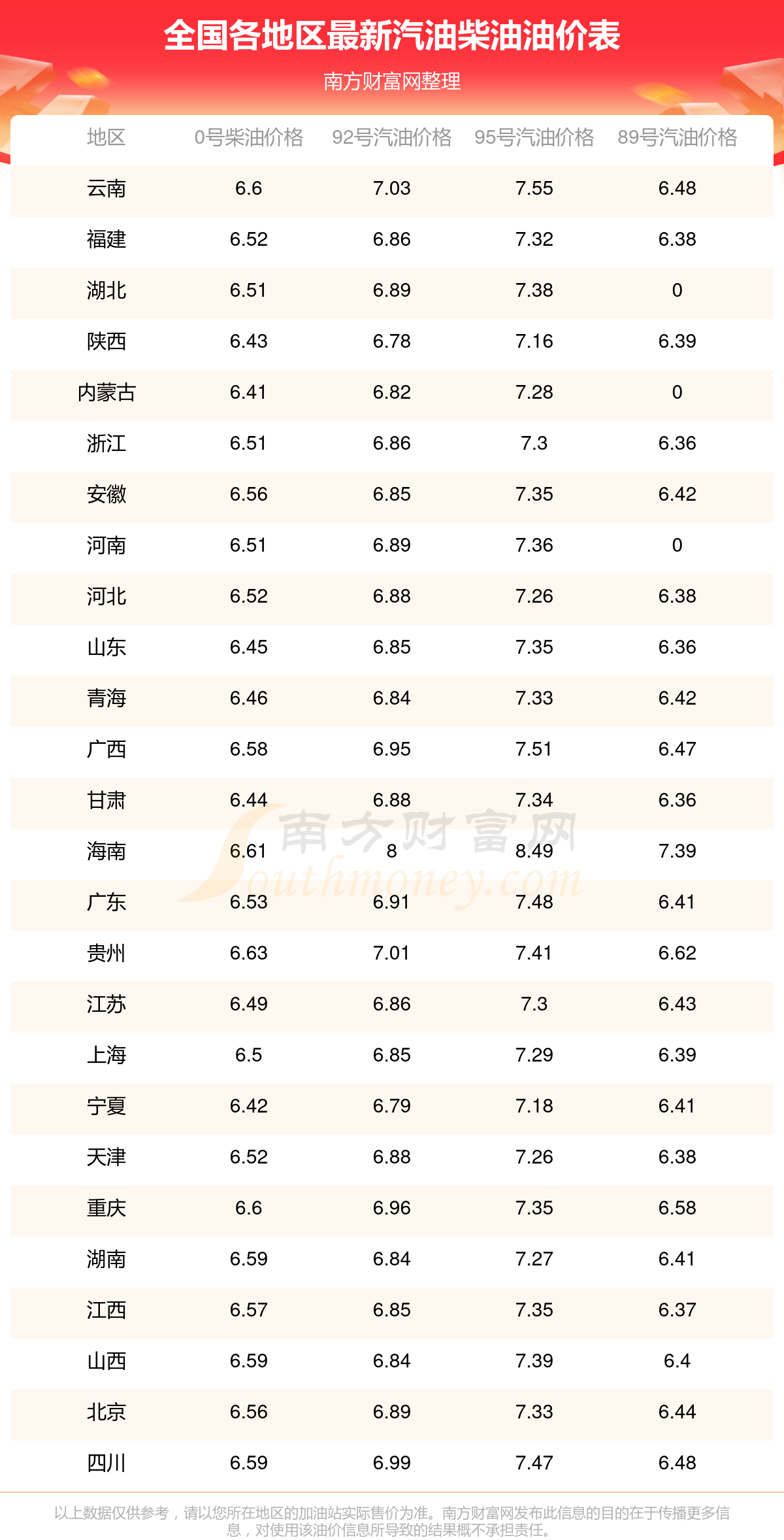 2025年11月30日全國油價調(diào)整及最新汽油價格表