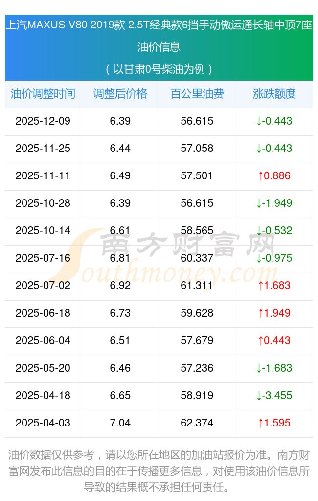 按12月9日0號(hào)柴油最新調(diào)整價(jià)格6.39元每升來計(jì)算(以甘肅為例),該車型百公里平均油費(fèi)為56.615元,按上一輪11月25日調(diào)整價(jià)格6.44元每升來計(jì)算,百公里平均油費(fèi)為57.058元,對比上一輪少花0.443元,下一輪油價(jià)調(diào)整時(shí)間為12月22日24時(shí)。
