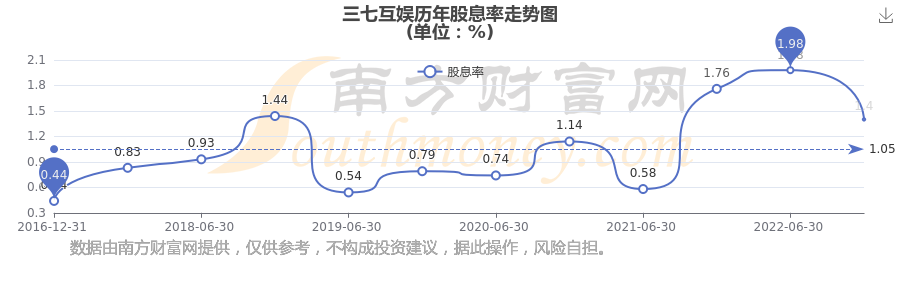 近年三七互娛年度股息率走勢(shì)如下圖: