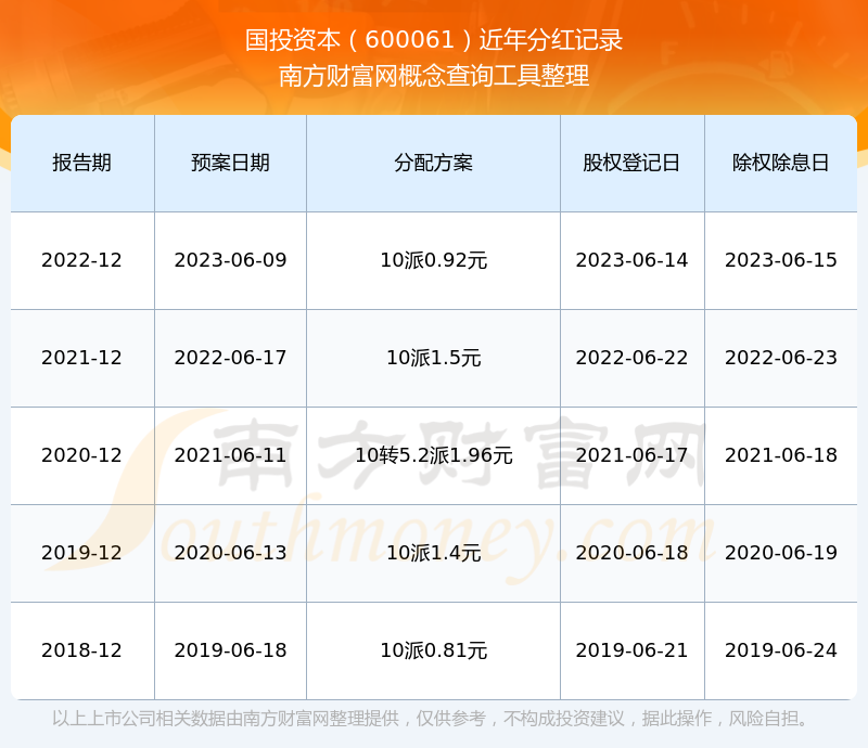 一、國(guó)投資本(600061)股票分紅記錄
