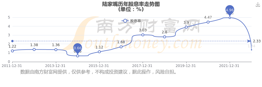 近年陸家嘴年度股息率走勢如下圖: