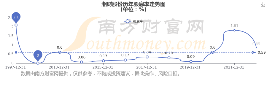近年湘財股份年度股息率走勢如下圖: