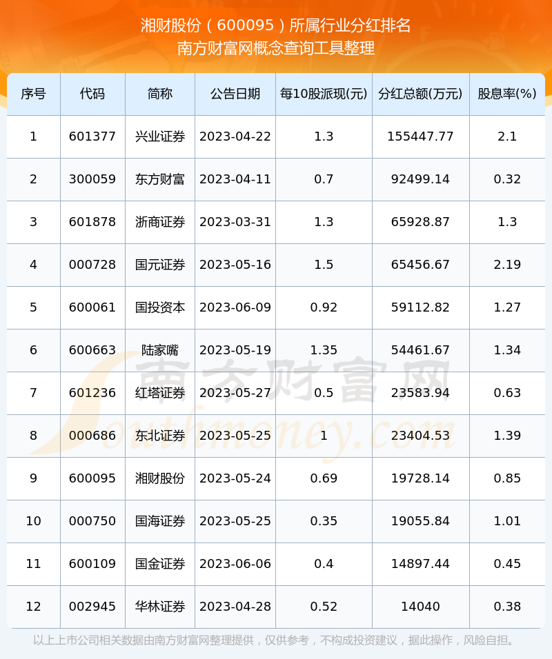 二、湘財股份600095行業(yè)分紅排名