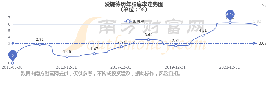近年愛施德年度股息率走勢如下圖: