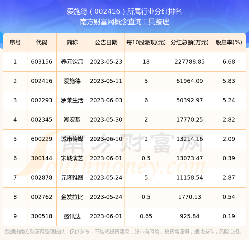 二、愛施德002416行業(yè)分紅排名