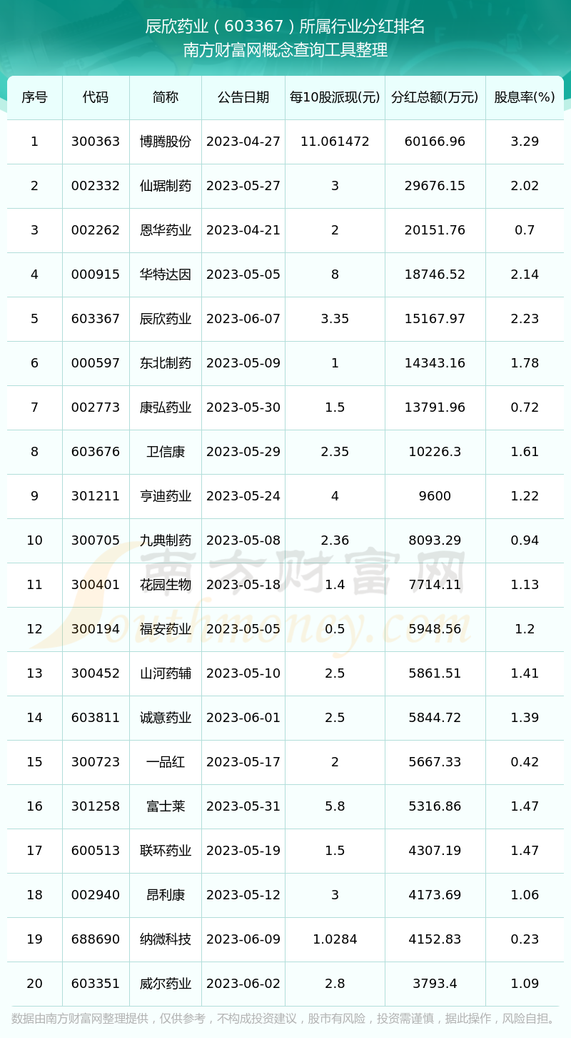 二、辰欣藥業(yè)603367行業(yè)分紅排名